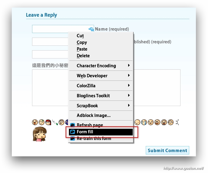 早上在「vsy」那看到她介紹了一個方便填表的 GM Script:「Comment Pre-fill」, 這個 Script 用起來雖然好用, 但可惜的是只能用於 WordPress 架設而成或少數其它平台的網站。