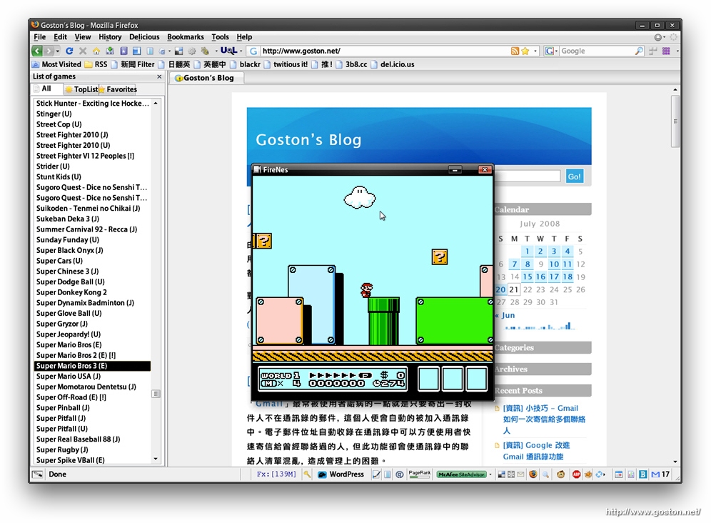 如上圖你所看到的,「FireNes」是一款「Firefox」用的任天堂紅白機模擬器。
