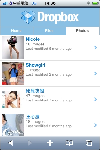 以上, 能夠隨時透過「iPhone」瀏覽「Dropbox」上的檔案是不是非常方便!? 有在使用「Dropbox」的「iPhone」使用者趕快上去試試這個新介面, 建議可以將網站新增到桌面上, 這樣以後要瀏覽「Dropbox」上的檔案就更方便囉! 至於沒有「iPhone」的人, 我也推薦你試試「Dropbox」的服務, 它真的能讓你省下不少檔案同步的少功夫哦!