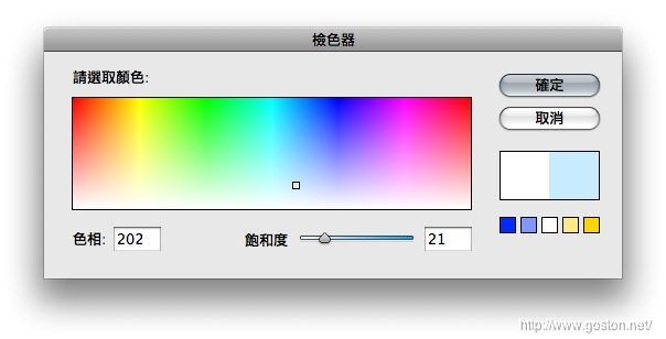 點選後, 於出現的「檢色器」視窗選一個淡淡的藍色: